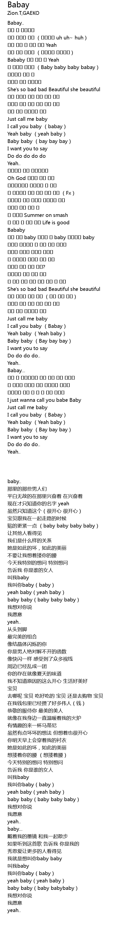 | [03:00.590] | Baby baby (Bay bay bay) |
