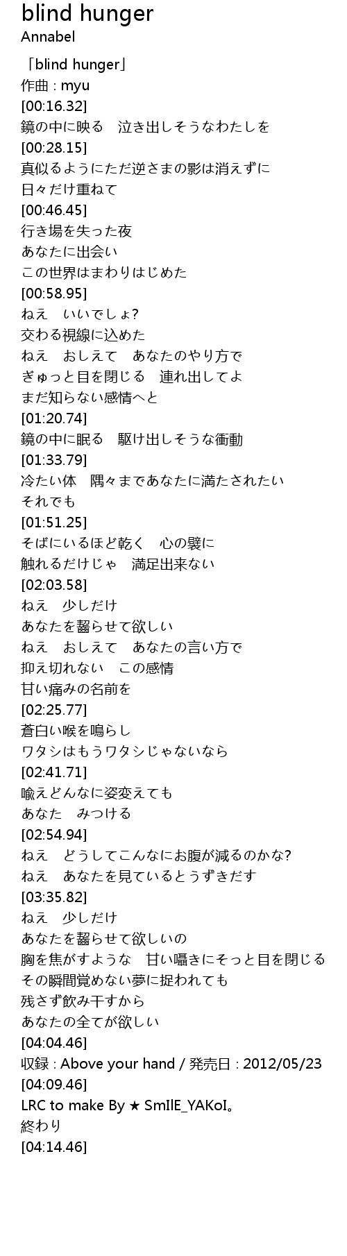 | [03:38.92] | あなたを齧らせて欲しいの |