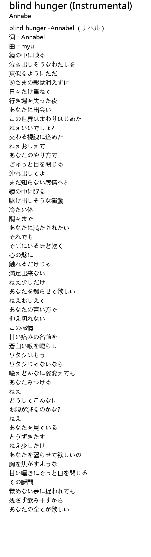 | [00:00.00] | blind hunger -Annabel (ナベル) |