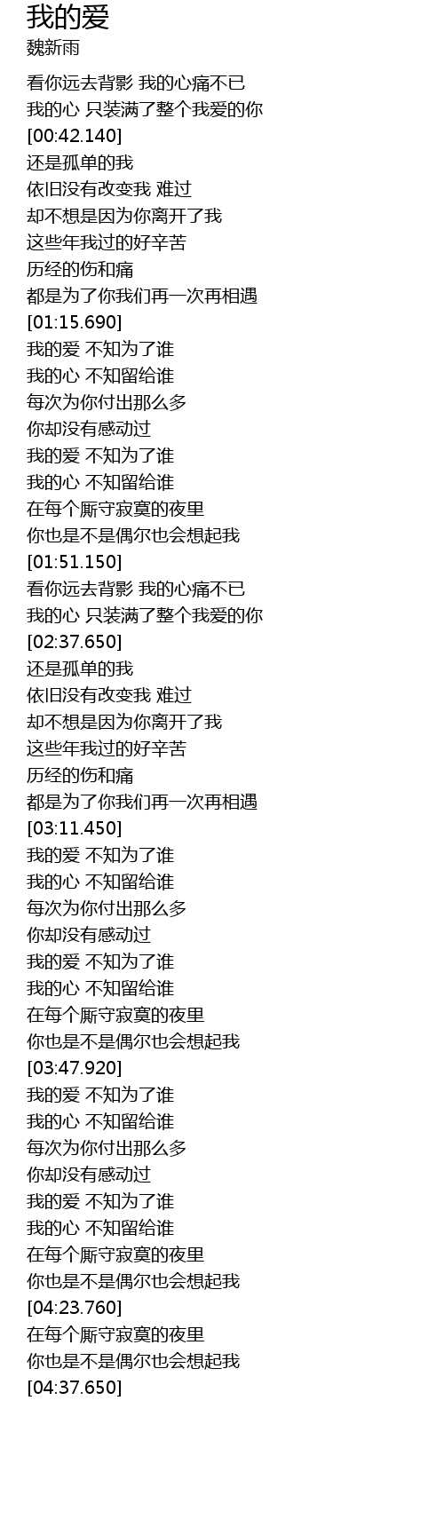 | [04:04.400] | wǒ de ài bù zhī wèi le shuí |