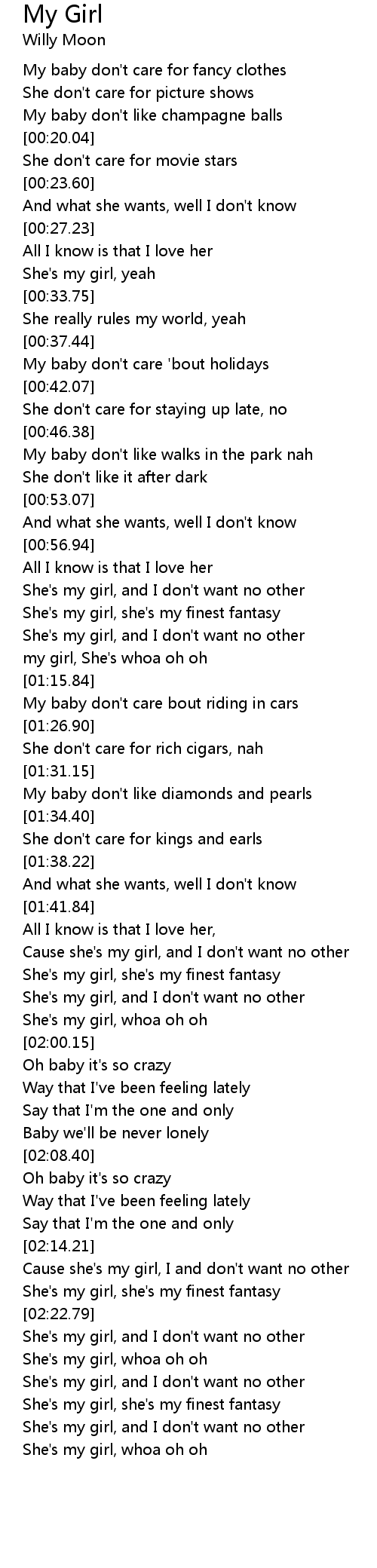 Cause she's my girl, and I don't want no other |