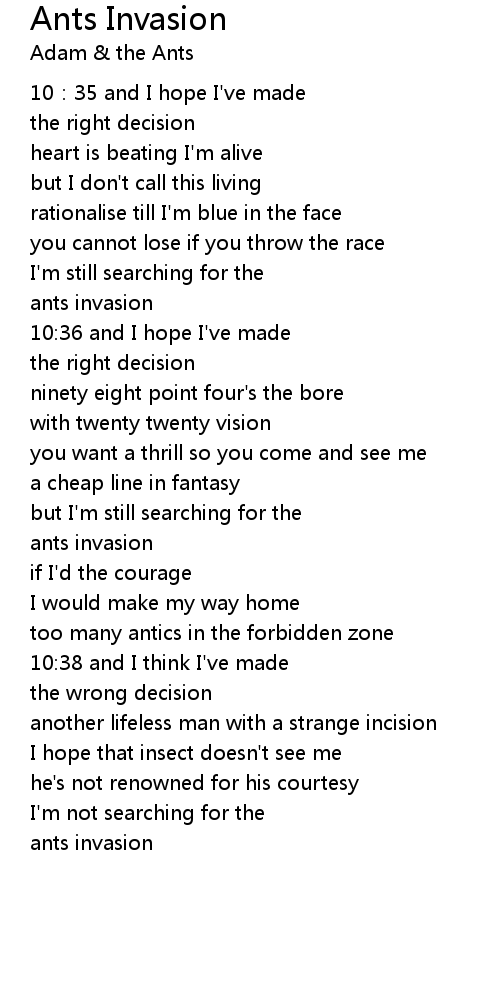 | Song | Ants Invasion |
