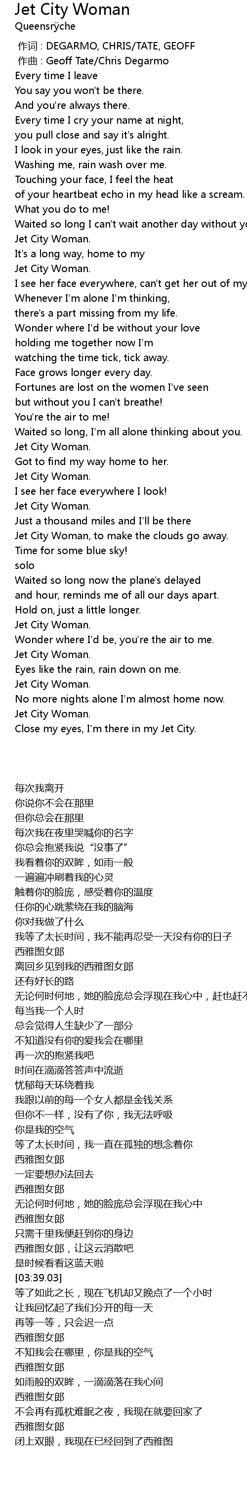 | [03:02.89] | Jet City Woman. |