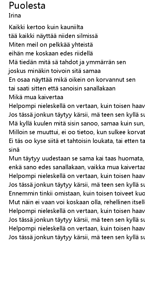 | Jos t ss jonkun t ytyy k rsii, m teen sen kyll sun puolesta |