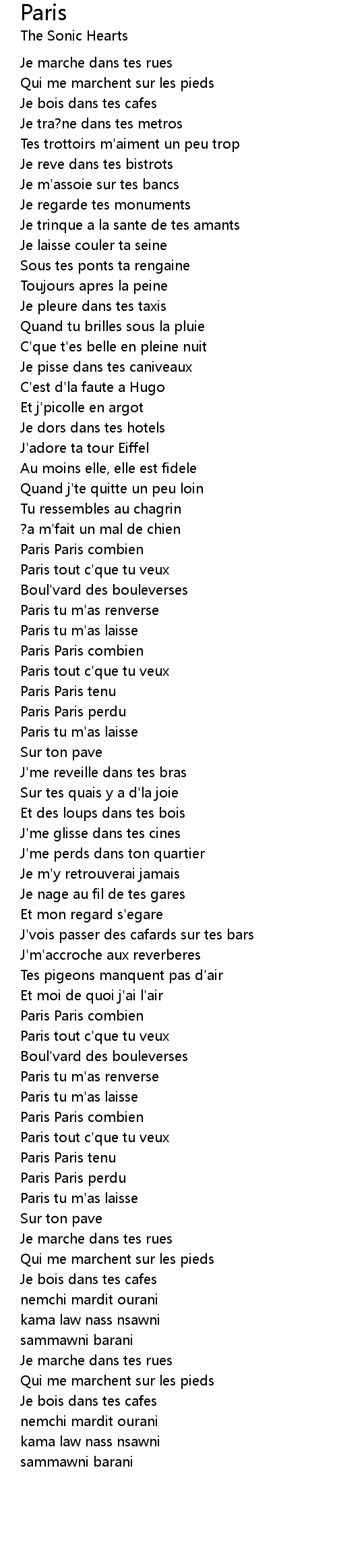 Paris tu m'as renverse |