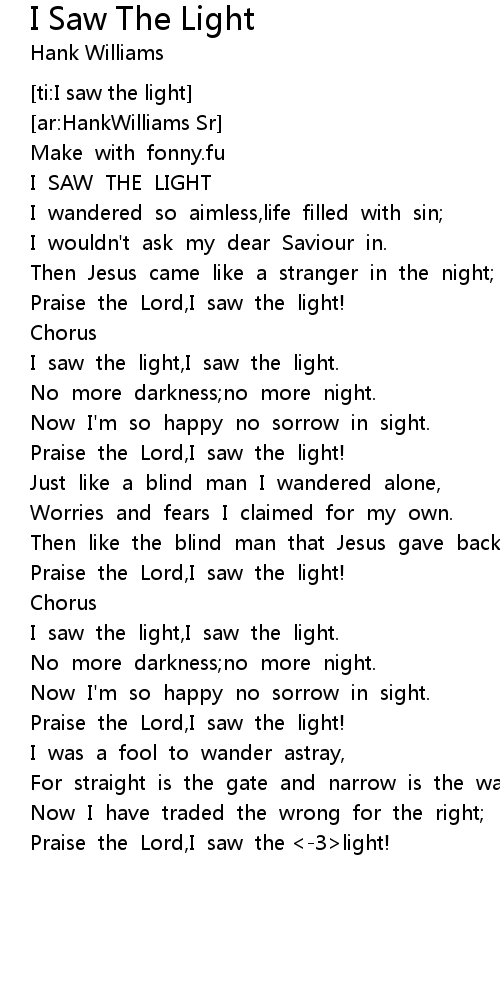I saw the light,I saw the light. |