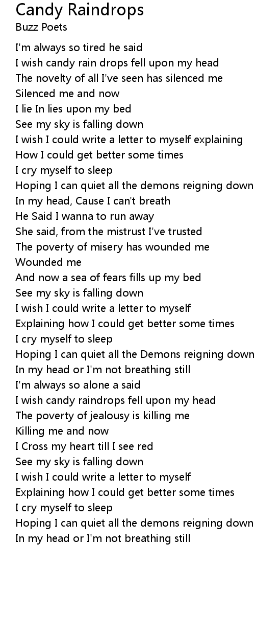 I wish candy raindrops fell upon my head |