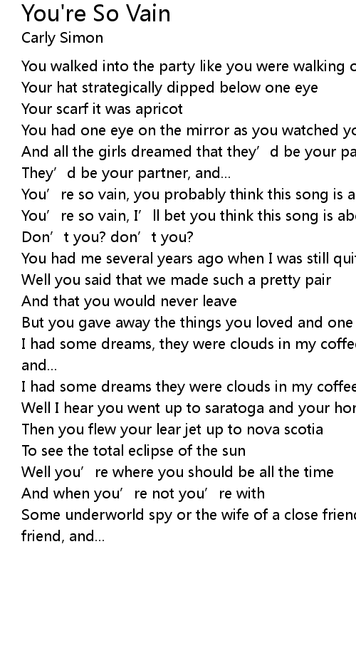 | [00:59.68] | You' re so vain, I' ll bet you think this song is about you |