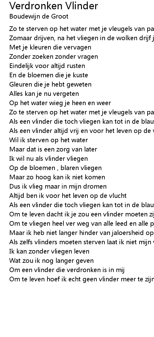 Als een vlinder die toch vliegen kan tot in de blauwe lucht |