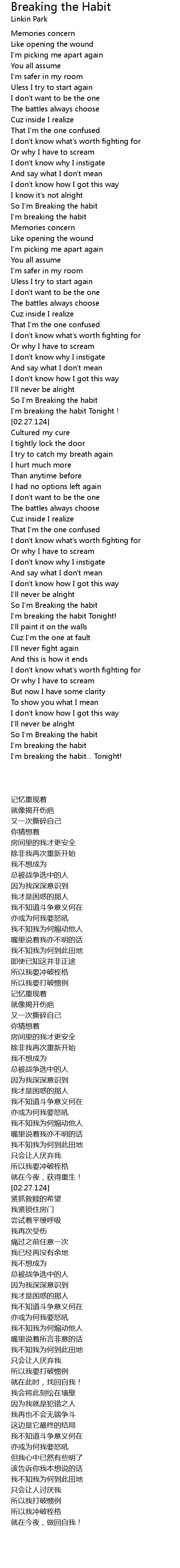 | [02:20.212] | I' m breaking the habit Tonight! |