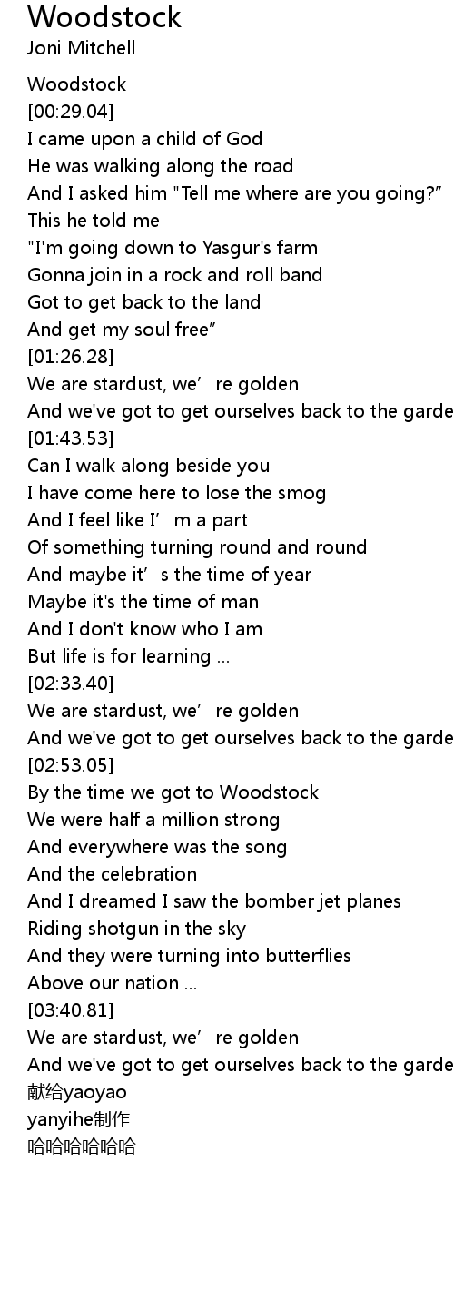 | [01:35.71] | And we've got to get ourselves back to the garden |