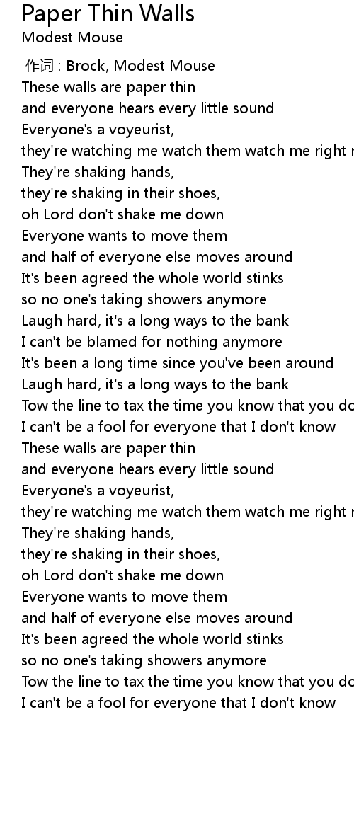 | Song | Paper Thin Walls |