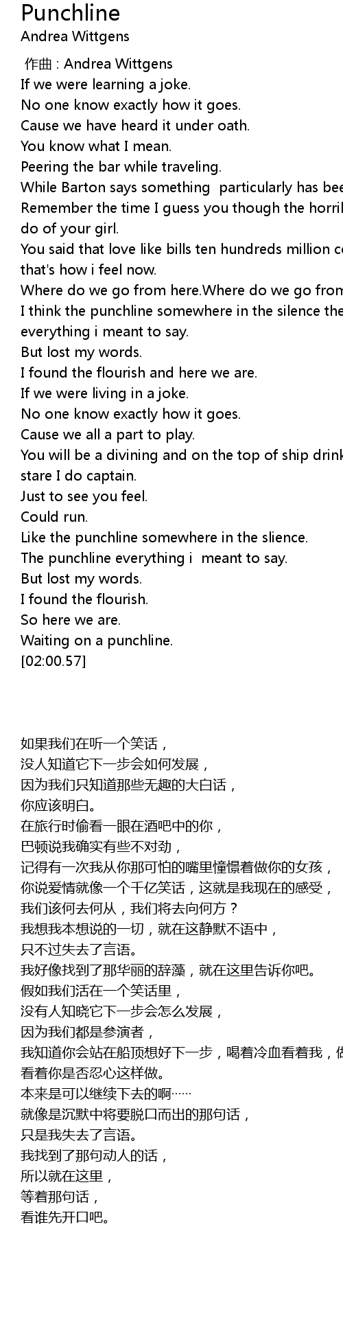 | [01:41.66] | Like the punchline somewhere in the slience. |