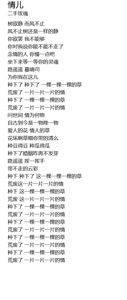 | [01:38.899] | 荒废了 一片一片一片的情 |