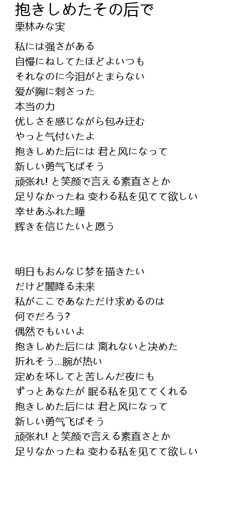 | Song | 抱きしめたその后で |