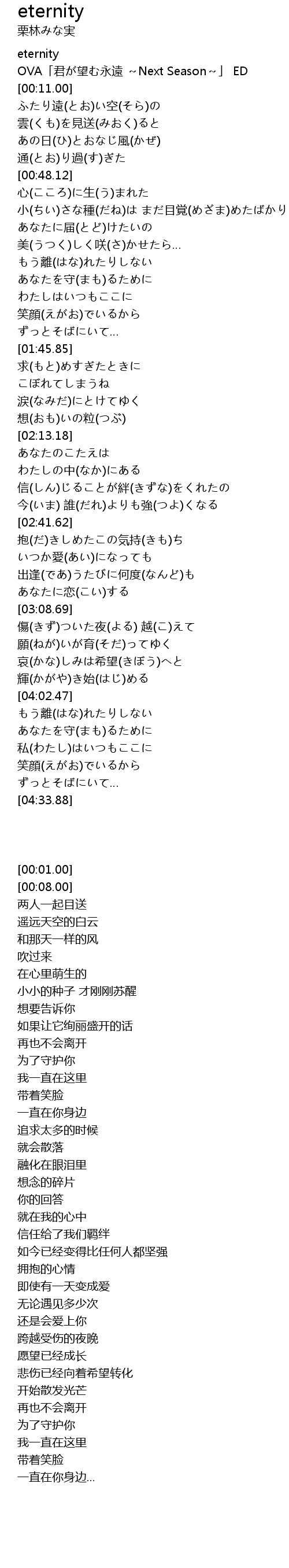 | [00:08.00] | OVA「君が望む永遠 ~Next Season~」 ED |