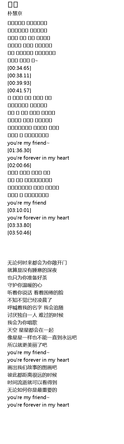 | [00:16.62] | 따뜻하게 마음을 지켜줄꺼야 |