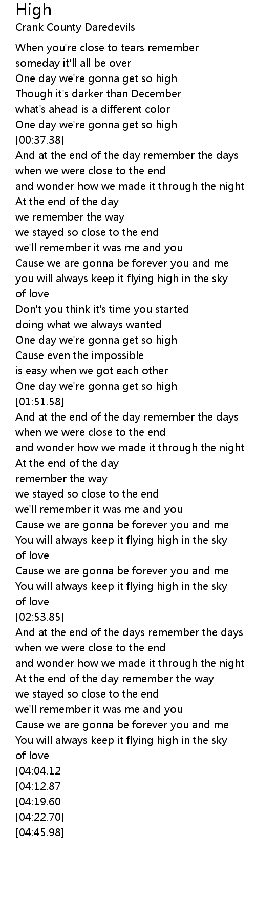 One day we're gonna get so high |