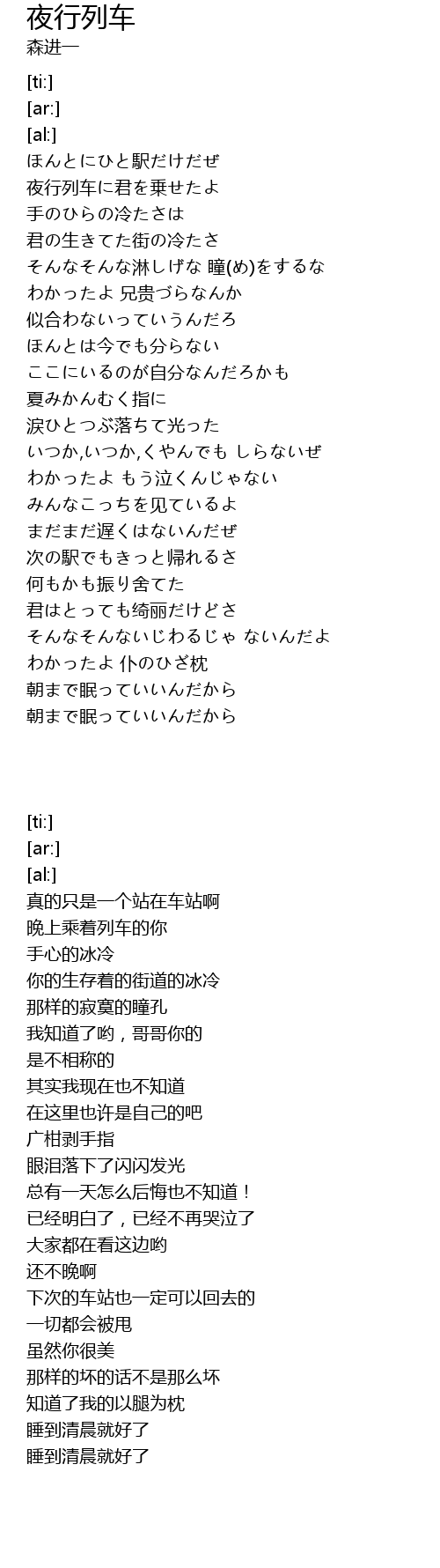 | Song | 夜行列车 |
