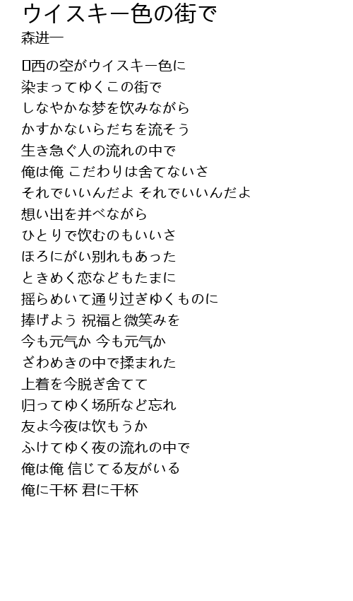 | Song | ウイスキー色の街で |