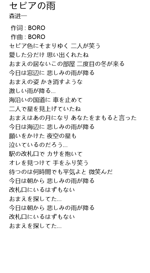 | [00:34.469] | セピア色にそまりゆく 二人が笑う |
