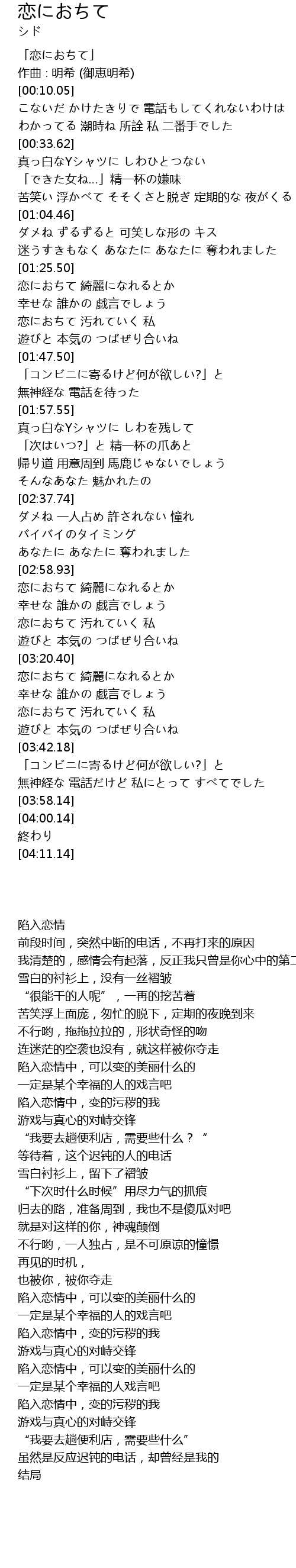 | [01:36.87] | 恋におちて 汚れていく 私 |
