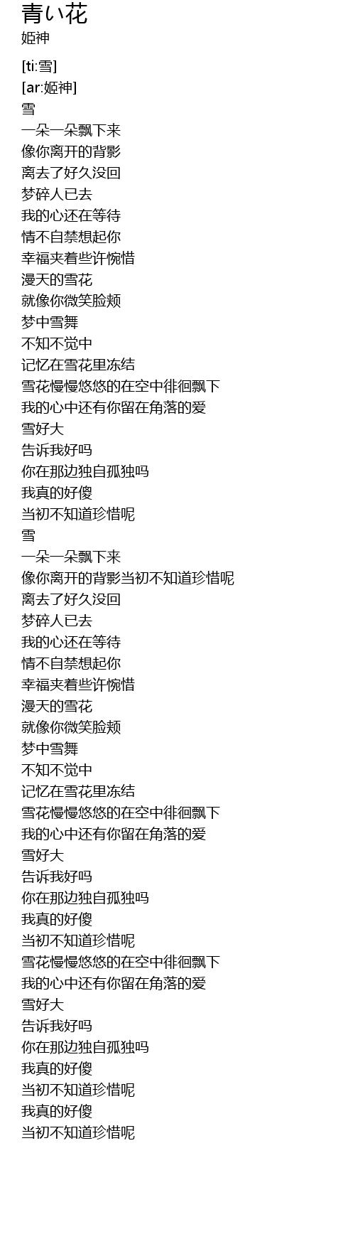 | [03:33.38] | jì yì zài xuě huā lǐ dòng jié |
