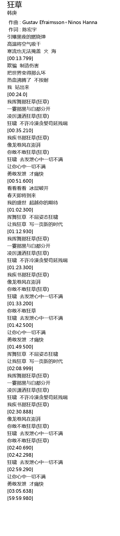 | [02:35.298] | nǐ gǎn bù gǎn kuáng cǎo kuáng cǎo |