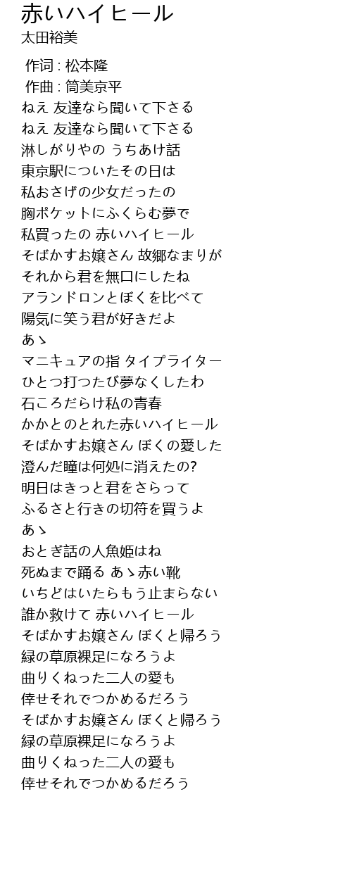 | [02:54.276] | 誰か救けて 赤いハイヒール |