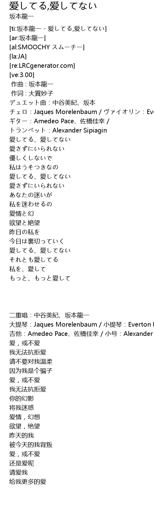 | [ti:坂本龍一 - 爱してる,爱してない] | |