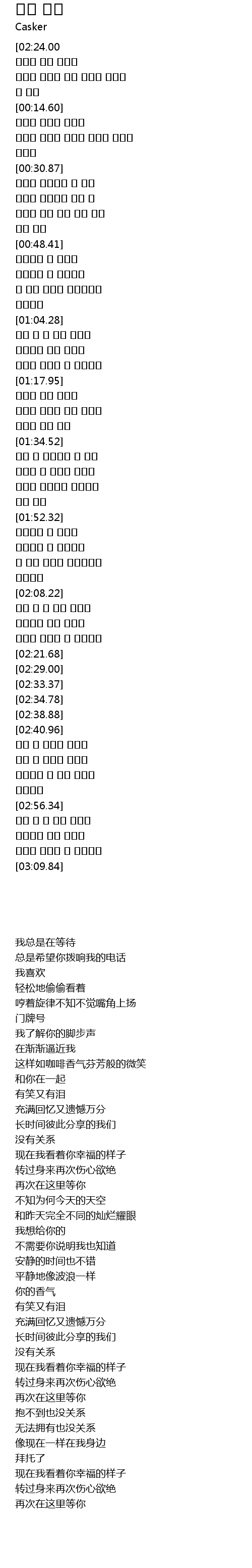 | [03:04.73] | 또다시 여기서 널 기다릴게 |