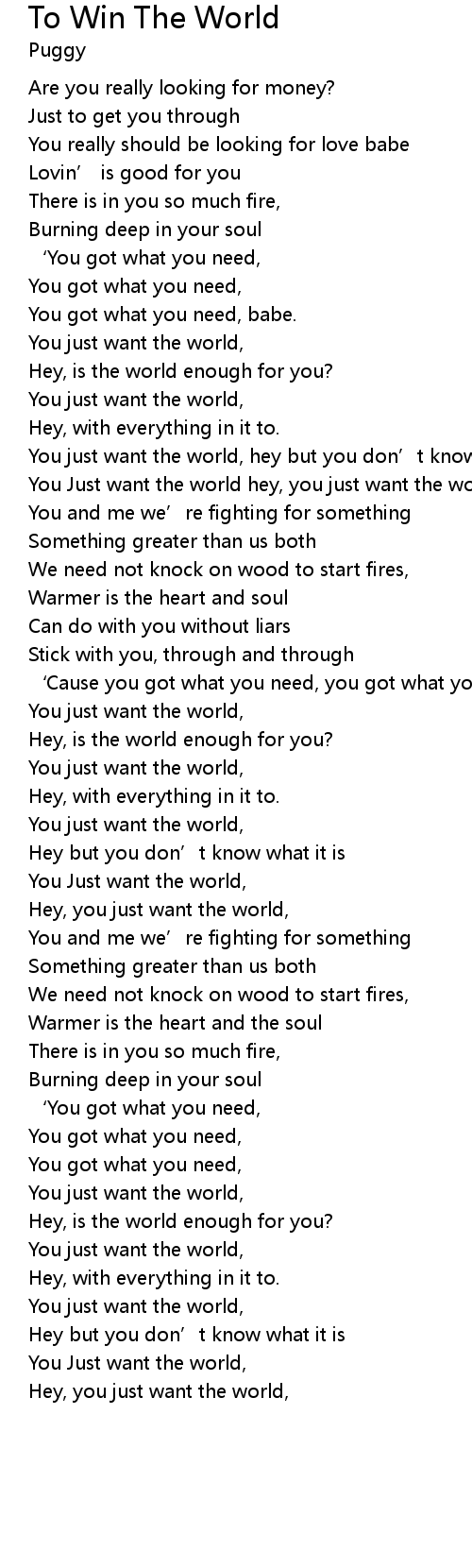 | You Just want the world hey, you just want the world. | |