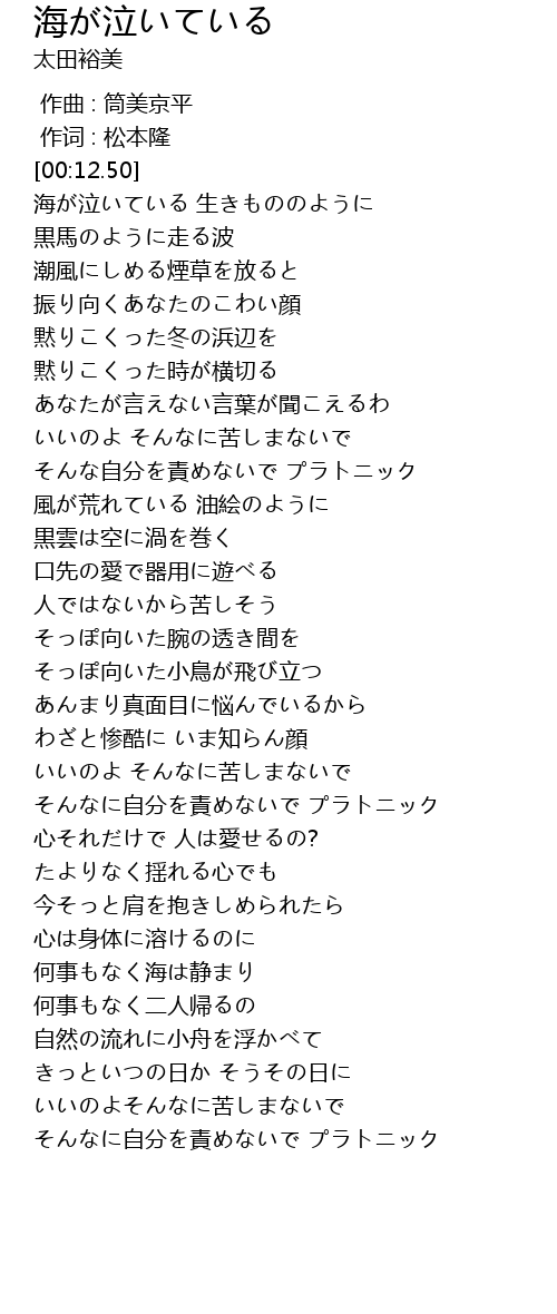 | [00:50.47] | 黙りこくった冬の浜辺を |