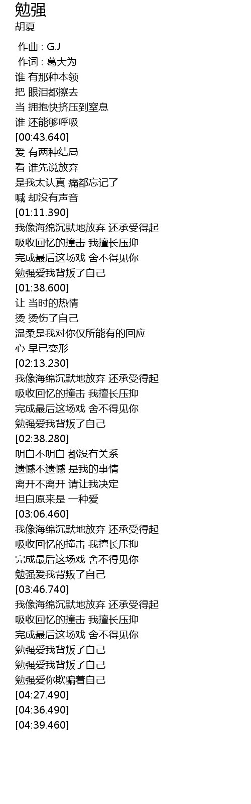 | [03:41.620] | mian qiang ai wo bei pan le zi ji |
