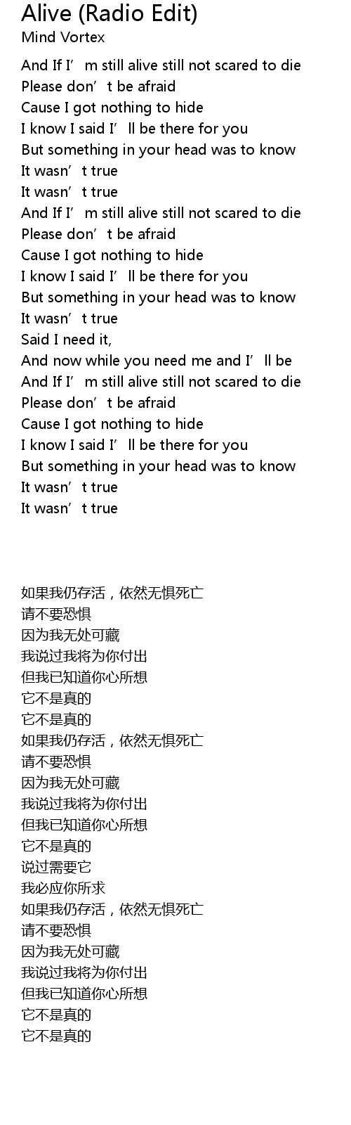 | [00:21.229] | And If I' m still alive still not scared to die |