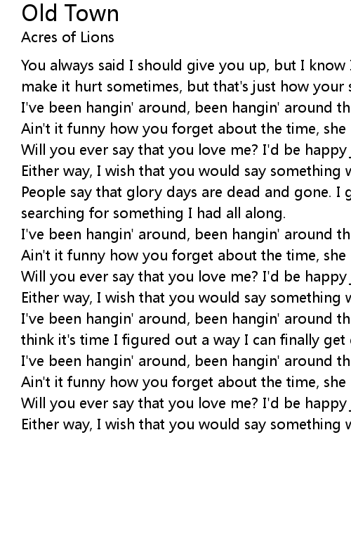 I've been hangin' around, been hangin' around this old town for way too long. Ain't it funny how you forget about the time, she still passes on. |