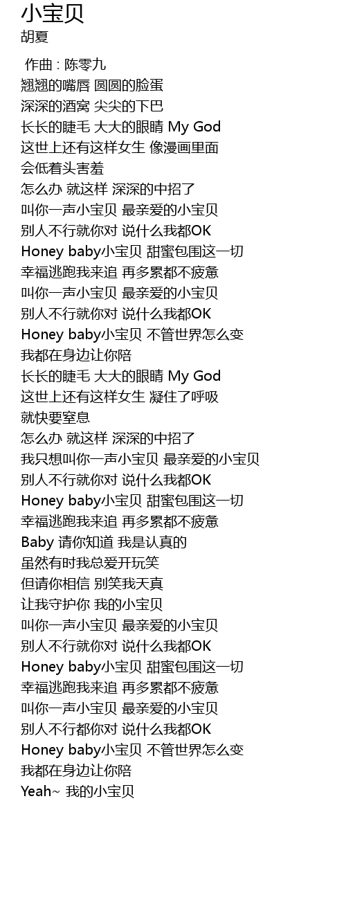 | [02:29.17] | 我只想叫你一声小宝贝 最亲爱的小宝贝 |