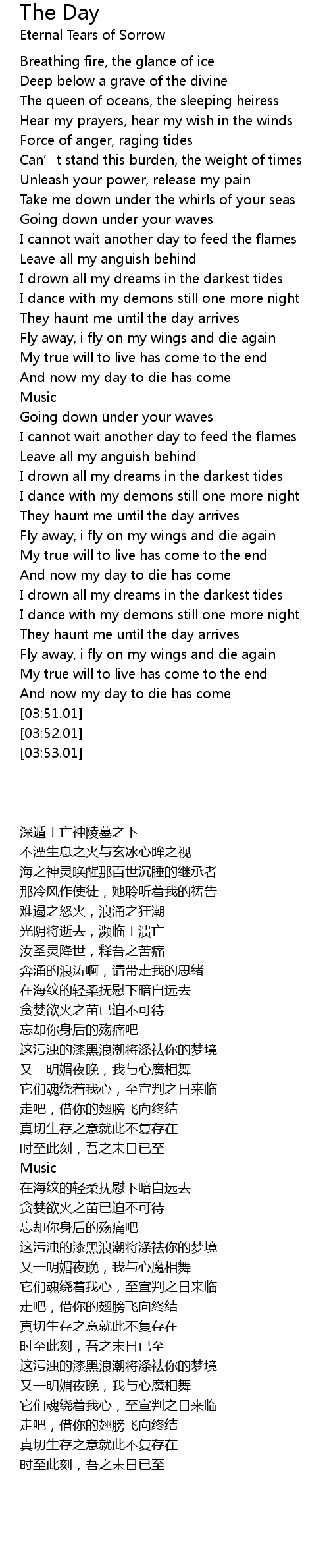 | [03:47.01] | And now my day to die has come |