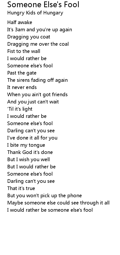 I would rather be someone else's fool |