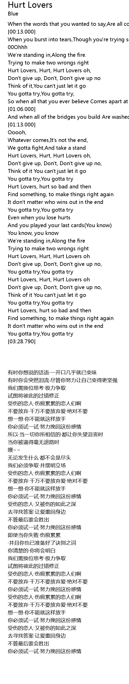 Hurt Lovers, Hurt, Hurt Lovers oh, |
