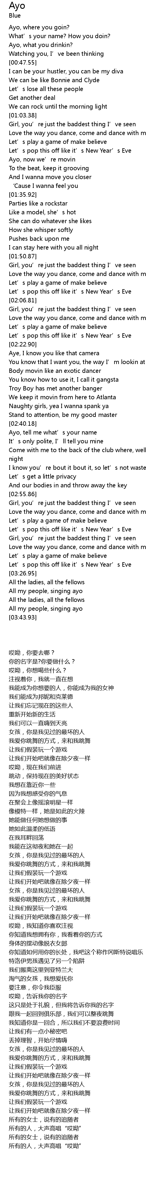 | [03:31.46] | All my people, singing ayo |