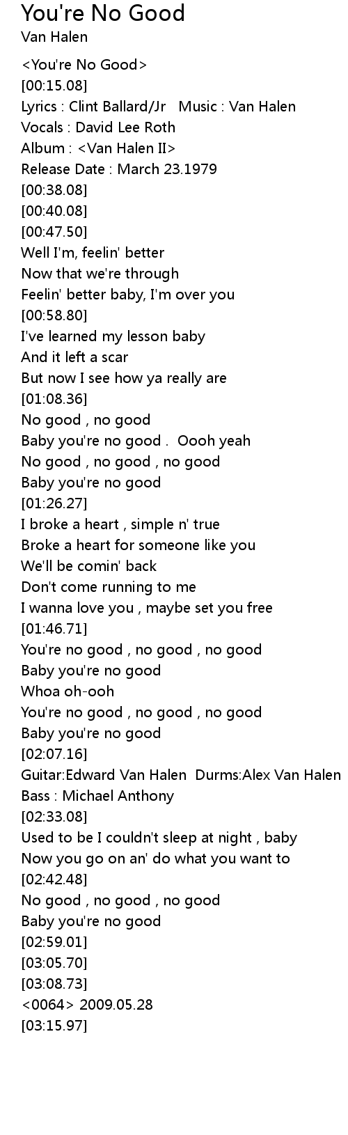 Lyrics : Clint Ballard/Jr Music : Van Halen |