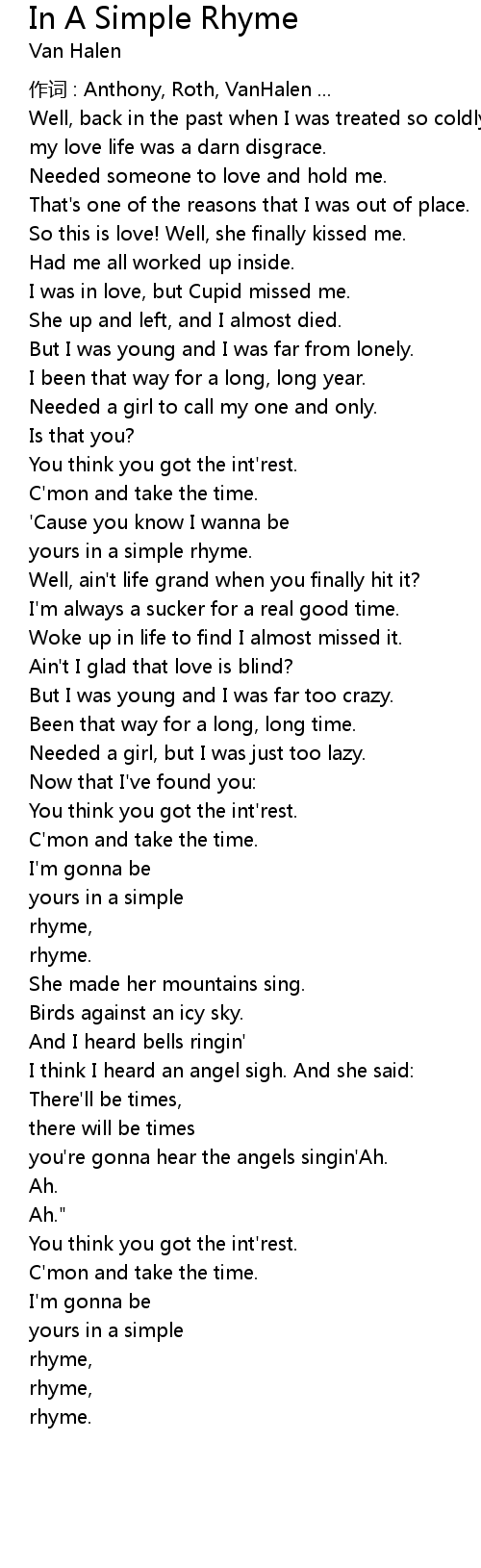 | yours in a simple rhyme. | |