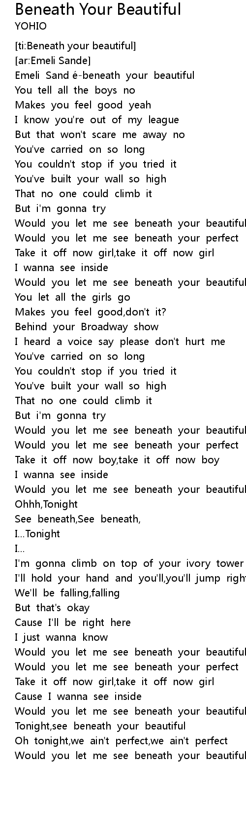 | [00:01.904] | Emeli Sand e beneath your beautiful |