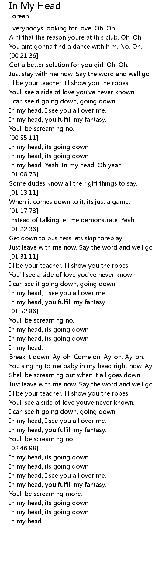 You singing to me baby in my head right now. Ay-oh. Ay-oh. Come on. |