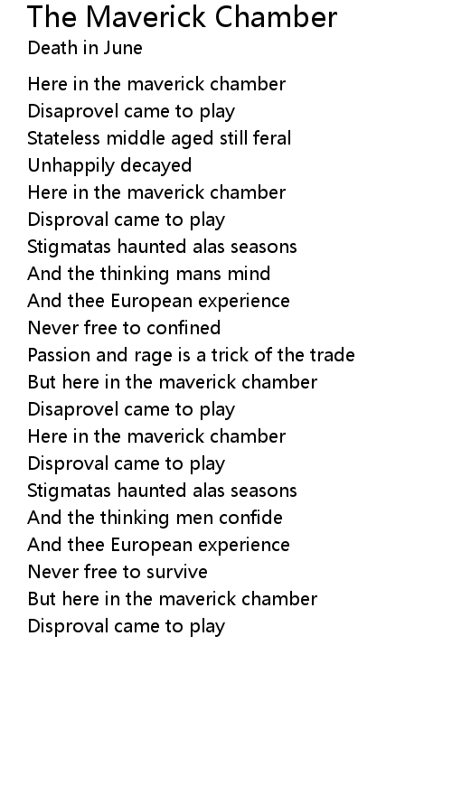 Here in the maverick chamber |