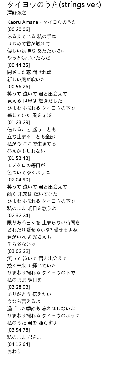 | [00:00.00] | Kaoru Amane - タイヨウのうた |