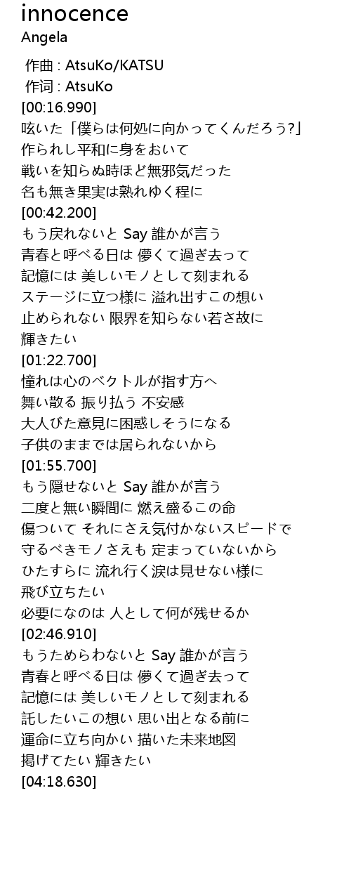 | [03:22.390] | もうためらわないと Say 誰かが言う |