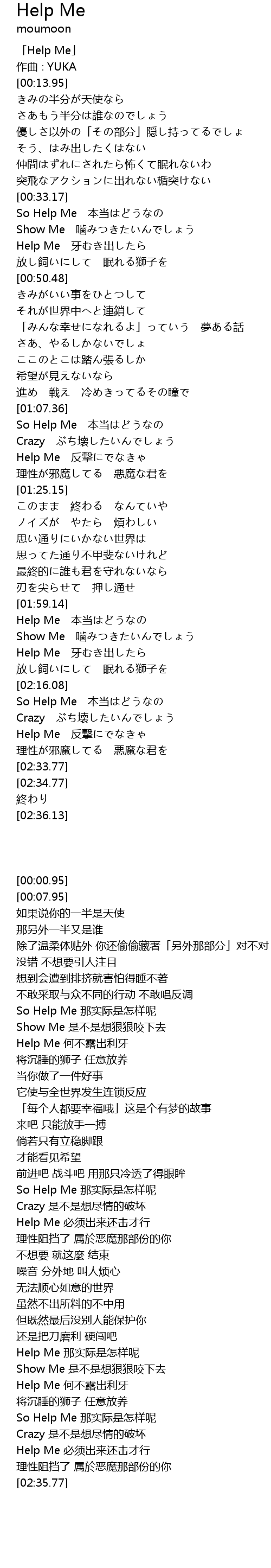 | [00:00.95] | 「Help Me」 |