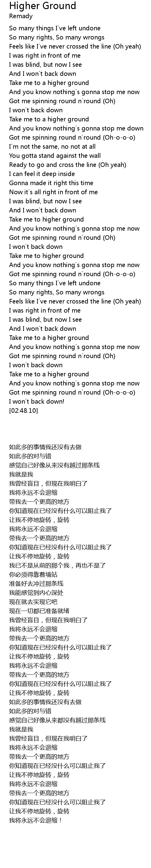 | [02:18.35] | Take me to a higher ground |
